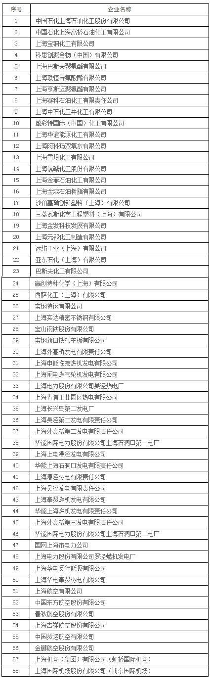 本市納入國(guó)家2016、2017年度碳排放報(bào)告與核查及排放監(jiān)測(cè)計(jì)劃制定工作的重點(diǎn)排放企業(yè)名單