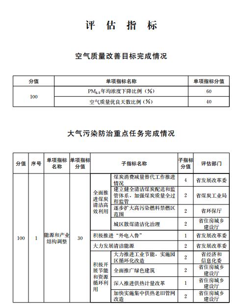 第三條評估指標(biāo)包括空氣質(zhì)量改善目標(biāo)完成情況、大氣污染防治重點任務(wù)完成情況。