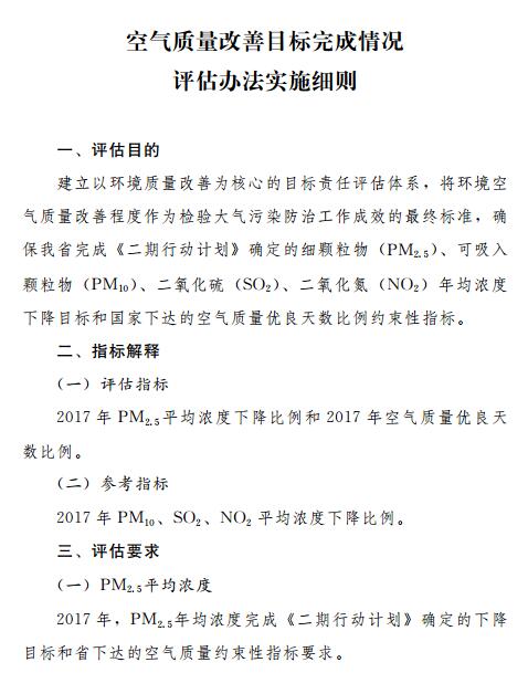 山東省大氣污染防治目標(biāo)任務(wù)完成情況評估辦法