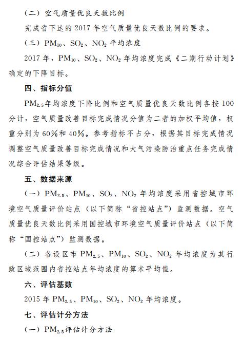 第二條本辦法適用于對我省各設(shè)區(qū)市人民政府(以下簡稱“各市政府”)大氣污染防治目標(biāo)任務(wù)完成情況的評估。
