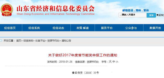 山東省啟動(dòng)組織開(kāi)展2017年度省節(jié)能獎(jiǎng)申報(bào)工作