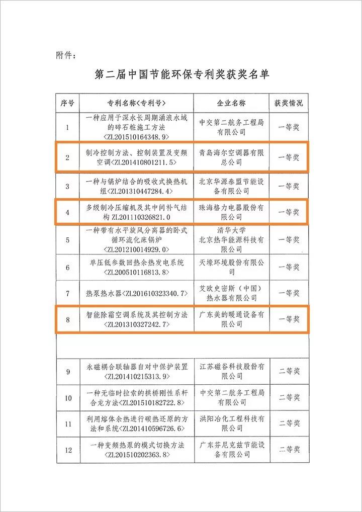 此次獲獎(jiǎng)名單里,更是有海爾空調(diào)、格力電器、美的暖通等知名大公司獲得了一等獎(jiǎng)、二等獎(jiǎng),這也足以看出這次的中國節(jié)能環(huán)保專利評(píng)選含金量非常高!