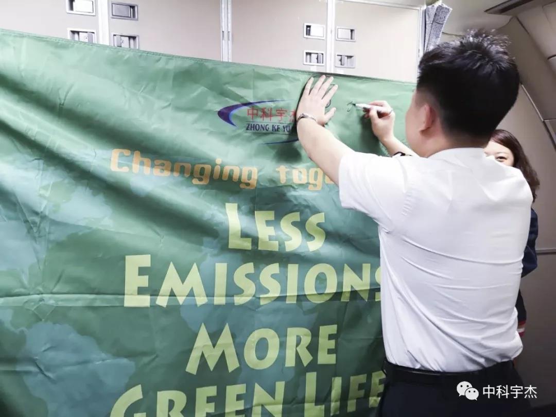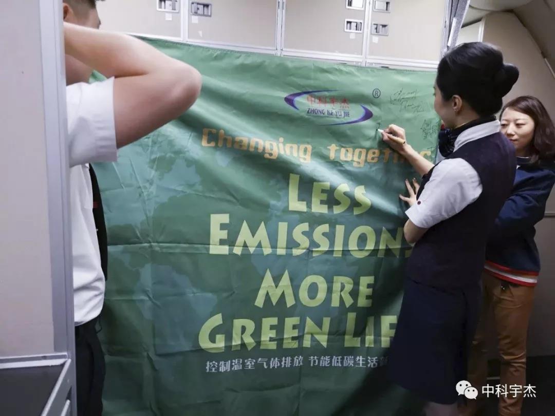 ?本次公益宣傳愛心傳遞活動(dòng)得到國航CA877機(jī)組成員大力支持,據(jù)乘務(wù)長介紹國航一直注重綠色低碳,國航機(jī)組成員作為節(jié)能減排的倡導(dǎo)者,保護(hù)環(huán)境,人人有責(zé),通過參與中科宇杰本次活動(dòng),呼吁全球共同參與,傳遞正能量,積極參與的溫室氣體減排行動(dòng)?!癓ess Emissions More Green Life”活動(dòng),并在的綠色宣傳旗上簽字,節(jié)能低碳我先行,共同參與,共同倡導(dǎo),節(jié)能低碳生活新風(fēng)尚。